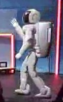 Asimo, c’est le dernier robot de Sony. Il bouge de façon quasi-parfaite : on croirait un être humain. J’ai mis en commentaire sur le blog de Jean-Michel que comme il y avait un nain dedans, ça rendait les choses plus faciles mais en fait, je dois avouer que je n’y crois pas moi-même. Très probablement, avec Sony, il n’y a pas de nain à l’intérieur (1) et on a juste affaire à une merveille de mécanique et d’automatique (la mécanique, c’est ce qui régit la structure du robot, l’automatique, c’est ce qui fait qu’il reste debout).